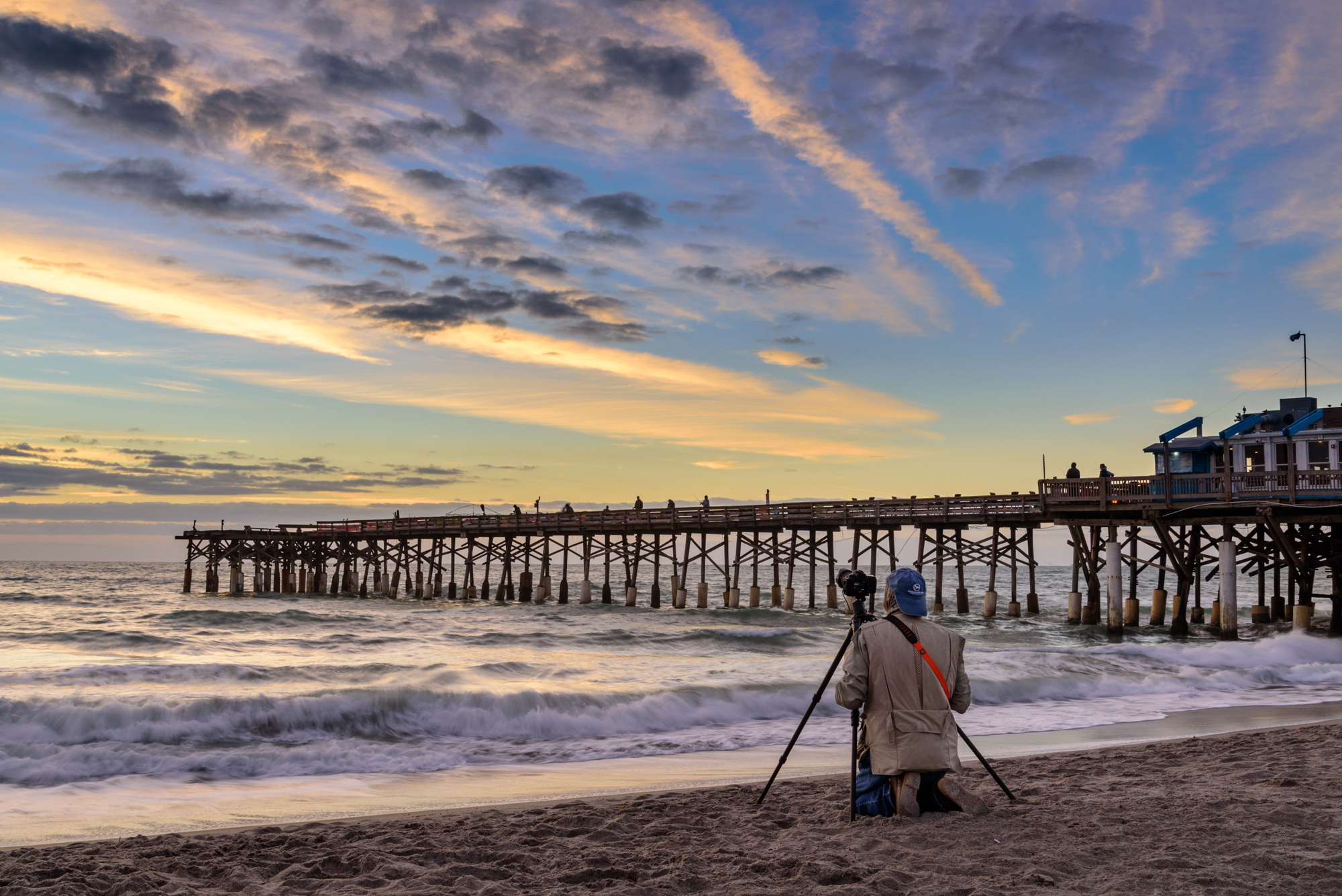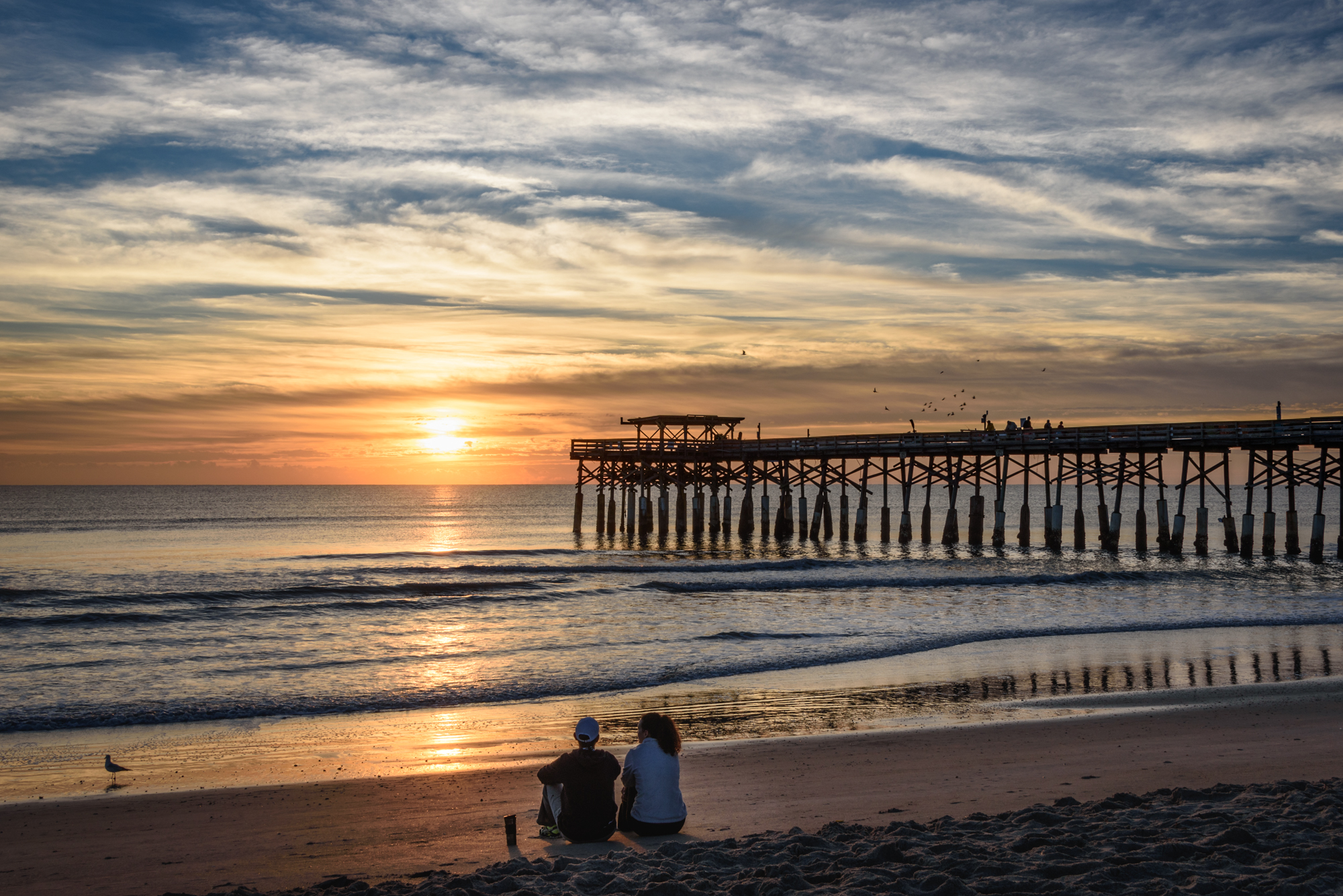 I frequent the pier to photograph the sunrise, and as you might expect, each sunrise is so different than the last one. It is a great place to feel the ocean breeze, to taste and smell the salt air, and be thankful that you are human and enjoying the divine art in the sunrise.