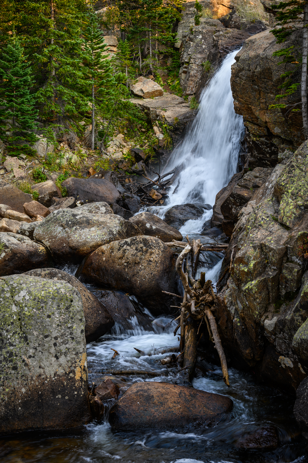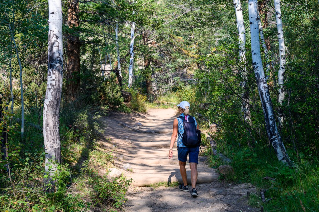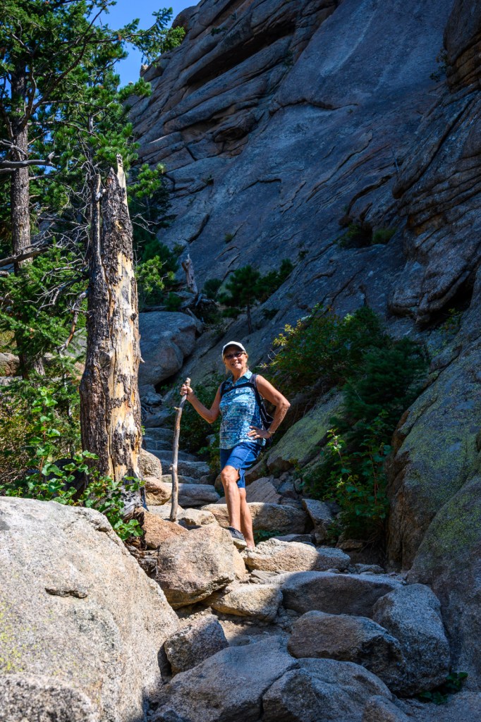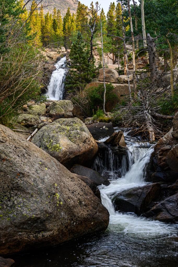 With our hiking legs in relatively good shape, we decided we would explore the park in the late afternoon too. We had two destinations in mind. First, we wanted to see Alberta Falls which was a fairly easy 0.9-mile hike from the Glacier Gorge Trailhead, off Bear Lake Road. Although the trail was more crowded than our morning adventure to Gem Lake, we did not find the trail to be overrun with people. We enjoyed the cooler temperatures of the late afternoon and were rewarded with beautiful views of Alberta Falls.