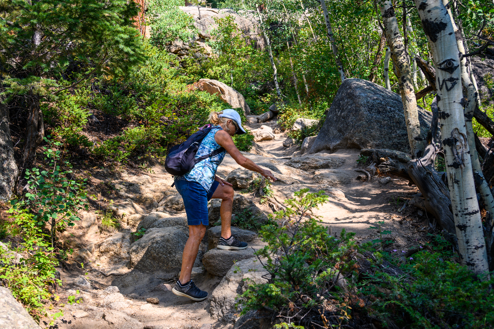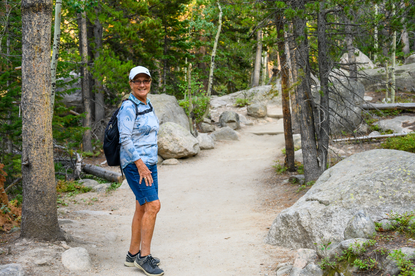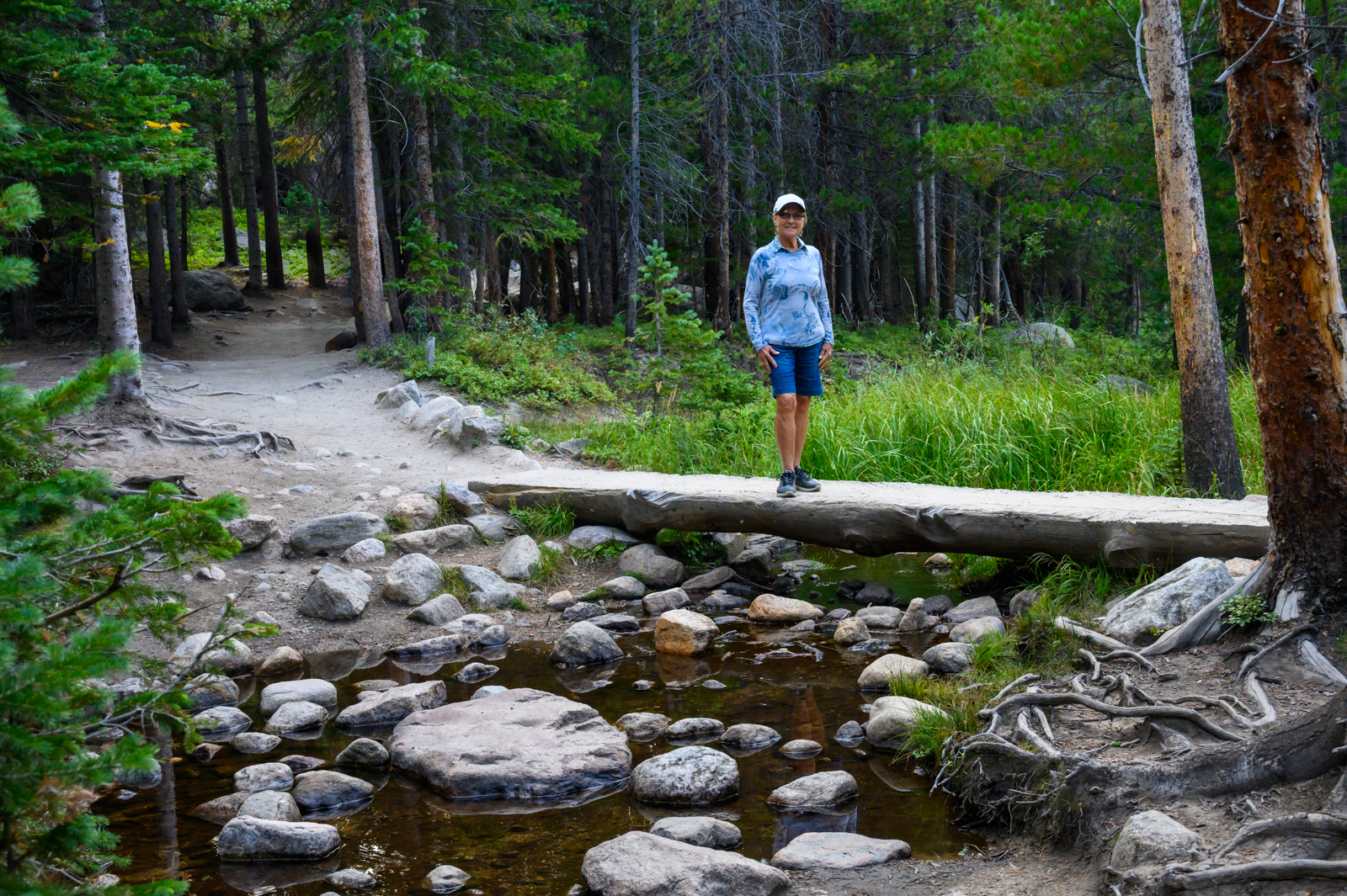 With our hiking legs in relatively good shape, we decided we would explore the park in the late afternoon too. We had two destinations in mind. First, we wanted to see Alberta Falls which was a fairly easy 0.9-mile hike from the Glacier Gorge Trailhead, off Bear Lake Road. Although the trail was more crowded than our morning adventure to Gem Lake, we did not find the trail to be overrun with people. We enjoyed the cooler temperatures of the late afternoon and were rewarded with beautiful views of Alberta Falls.