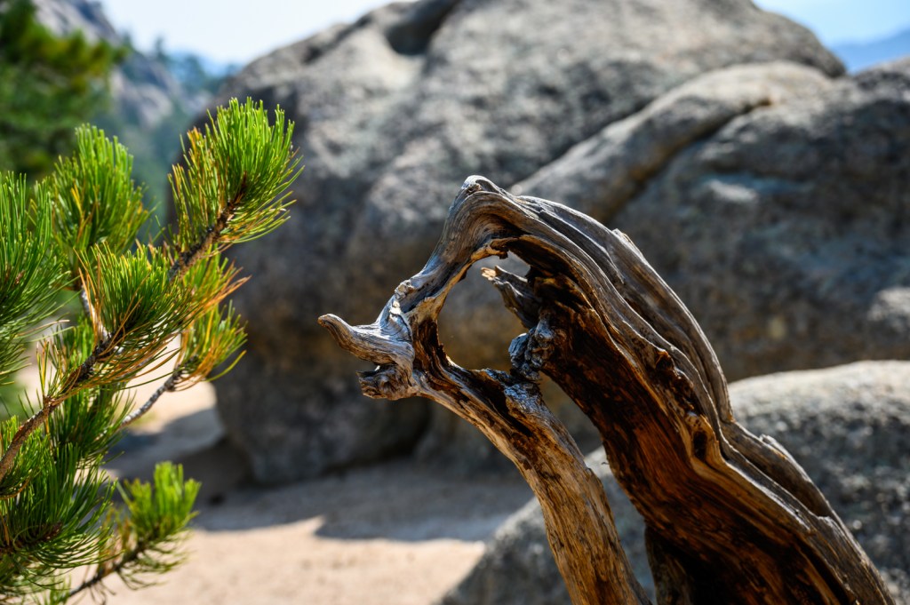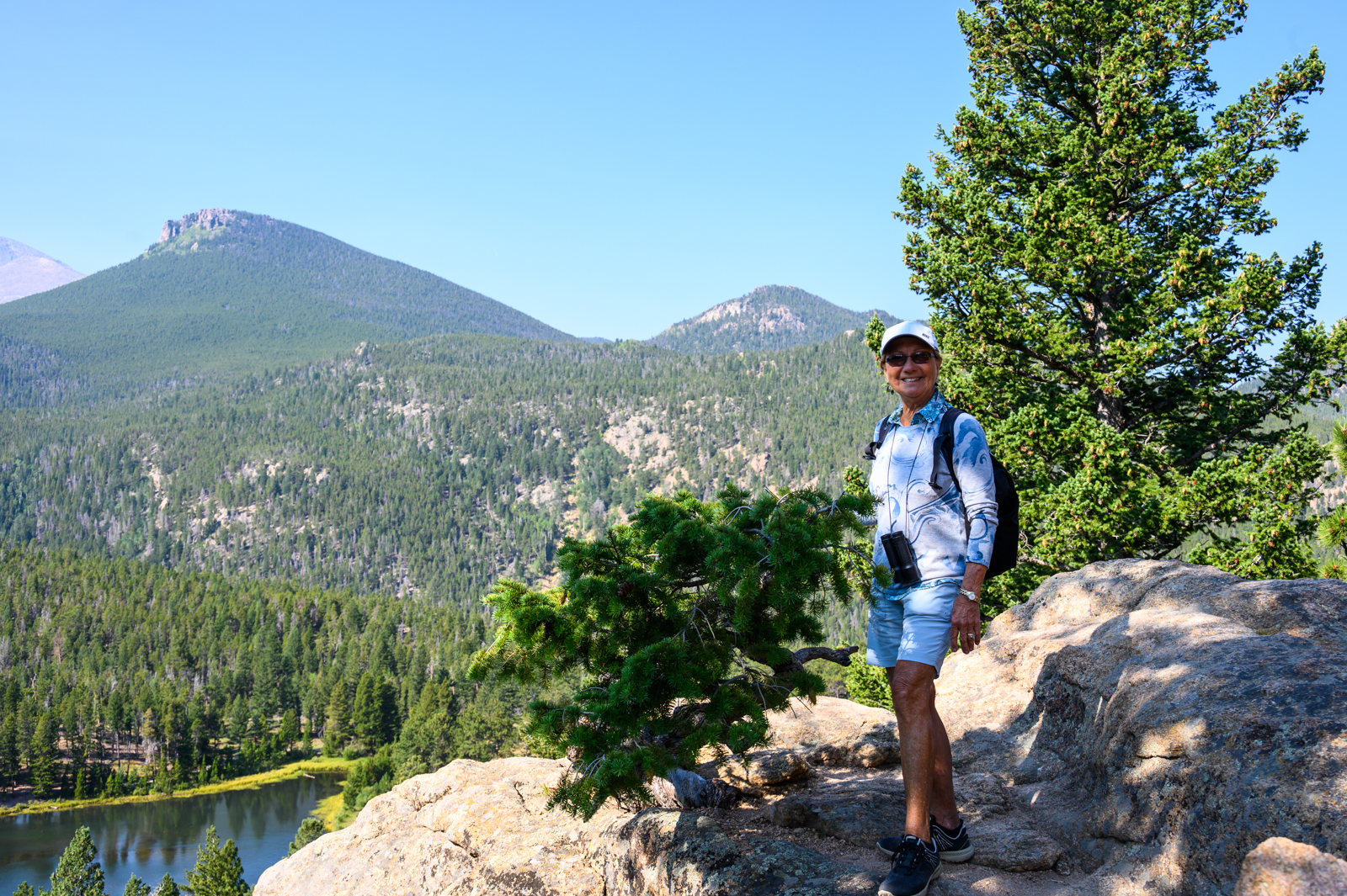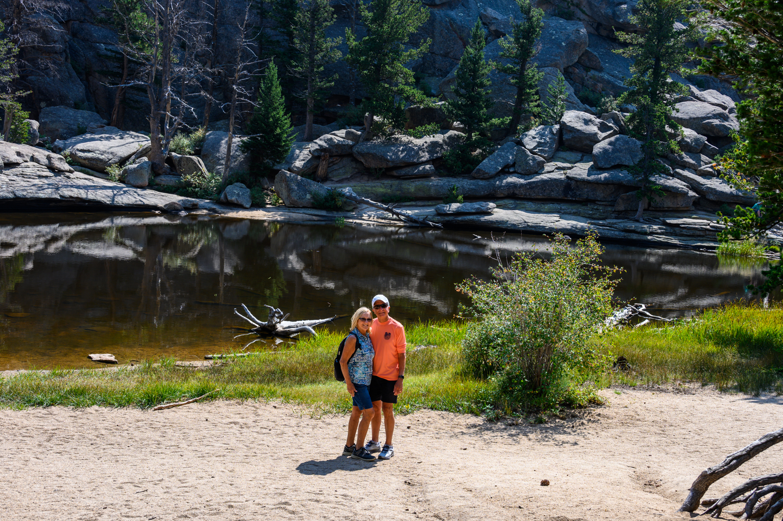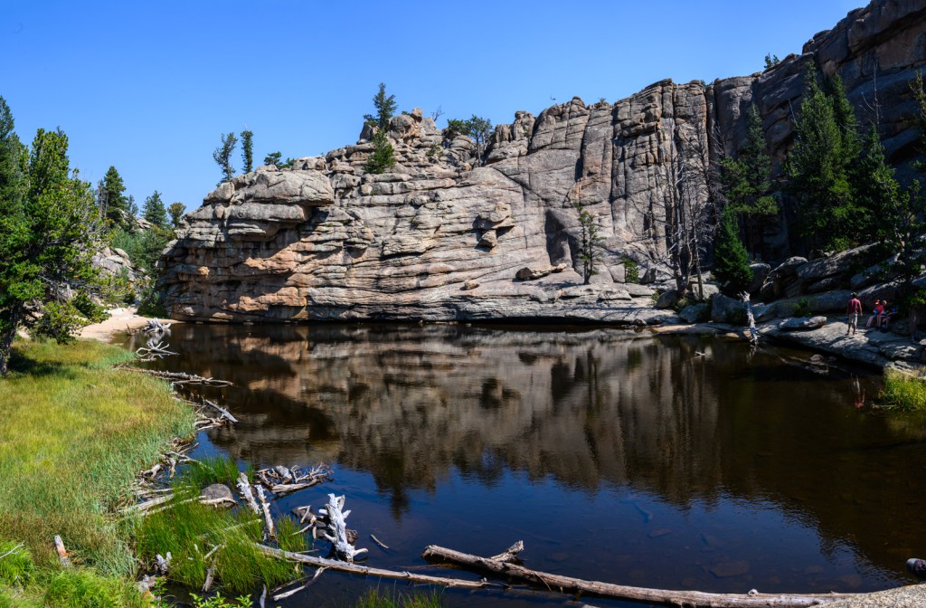 On the second day exploring the park, we decided to hike to Gem Lake, a 1.7-mile hike from Lumpy Ridge Trailhead, just outside downtown Estes Park. After an enjoyable breakfast in town, we headed to the trailhead. Our hike to Gem Lake was certainly more challenging with an 830-foot elevation change but it seemed most of the elevation gain was in the last quarter mile! We found we had the trail almost entirely to ourselves, encountering only a few more hikers along the way after a we passed a large group of young people. Gem Lake was certainly appropriately named. Seeing the small mountain lake reflecting the rocky outcrops making up the shoreline was ample reward for the last few hundred yards that seemed almost straight up. Once again, we captured our hike and the beautiful lake in a few photos.