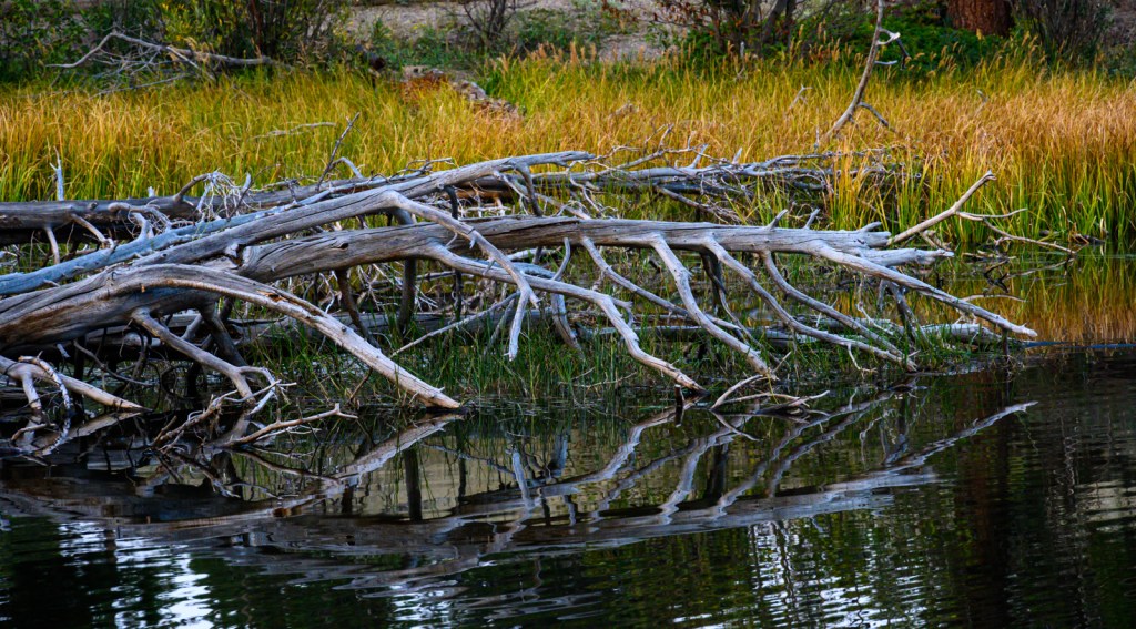 Our second destination this evening was Sprague Lake. We had previously seen the lake and spotted what we thought was a perfect bench to enjoy a wine and cheese happy hour in the late afternoon. Our planning could not have been more perfect. The mountain breezes were quiet affording us spectacular reflections on the lake as we enjoyed our little “happy hour” while the sun sank below the mountains. We found a little wine along with nature helps increase those “pleasant feelings” that being in nature provides.