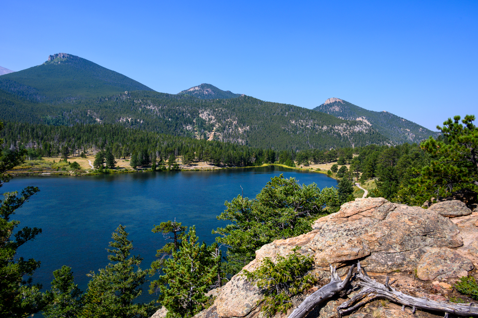 After returning to the Bear Lake Trailhead, we decided to take a quick hike around the very accessible and busy Bear Lake Trail. The pleasant views of the lake and mountains along the 0.6-mile loop were a great way to cool down and relax a little before our picnic lunch.