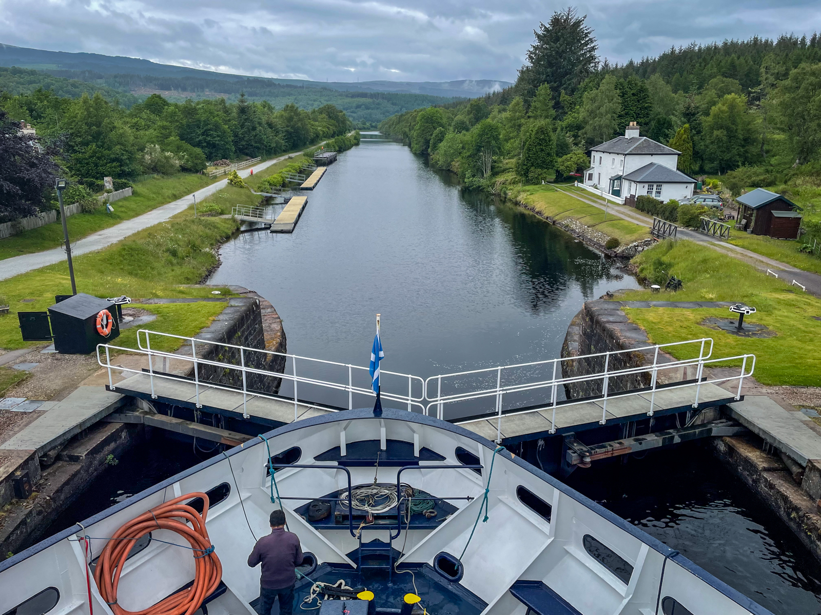After a pleasant night in Oban, the Lord of the Glens sailed to Corpach, the gateway to Scotland’s Caledonian Canal. The Corpach lock is the western entrance to the Caledonian Canal built between 1803 and 1822 to connect the natural Lochs (Lakes) that lie along the slip fault of the so-called Great Glen.
